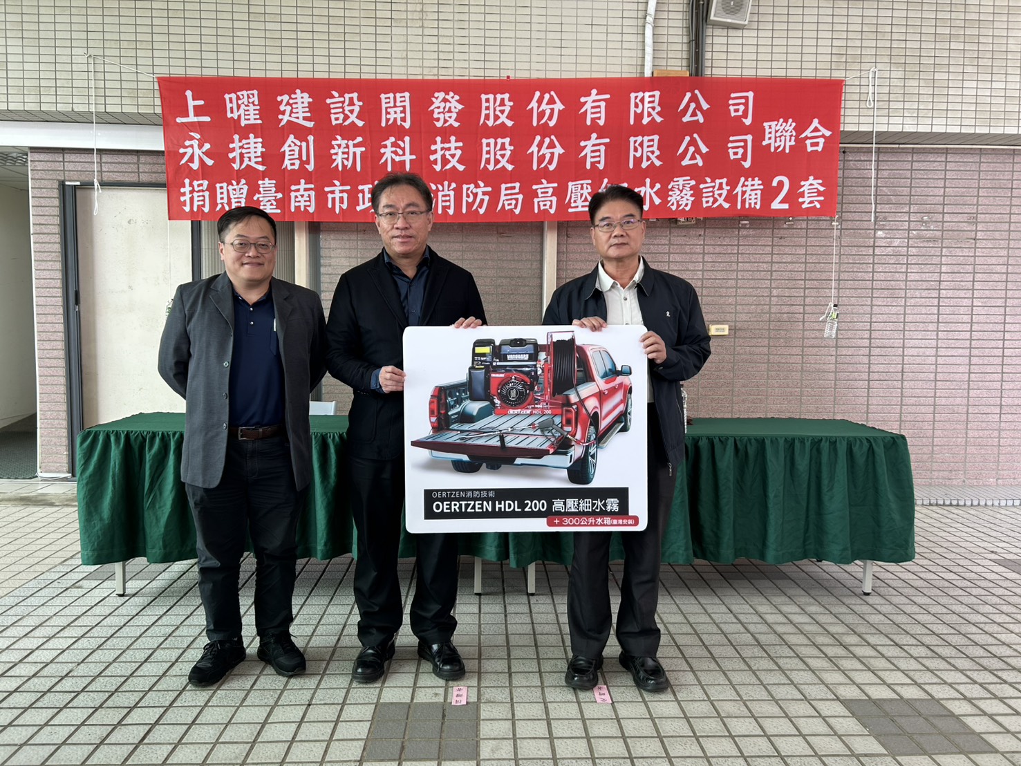 3. 購買消防救災高壓細水霧設備NT$600,000贈送台南市政府消防局。